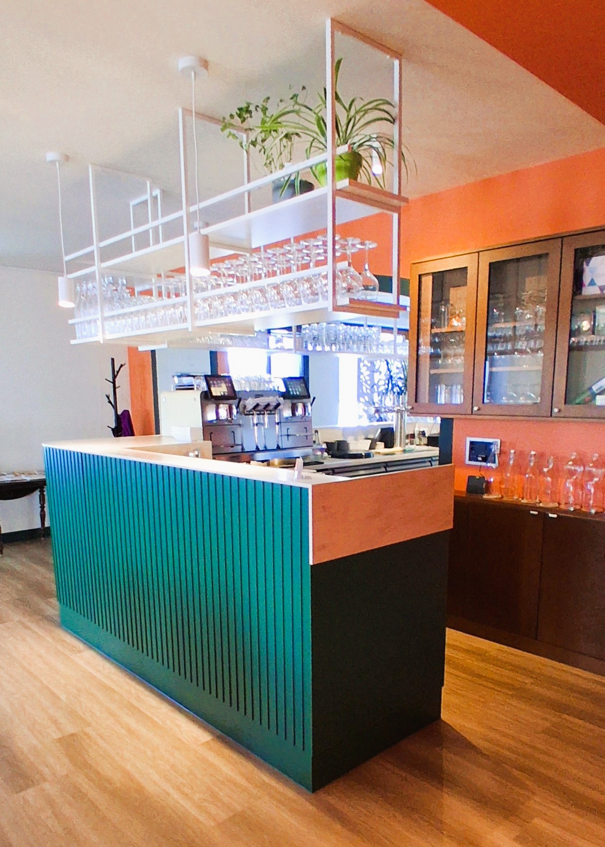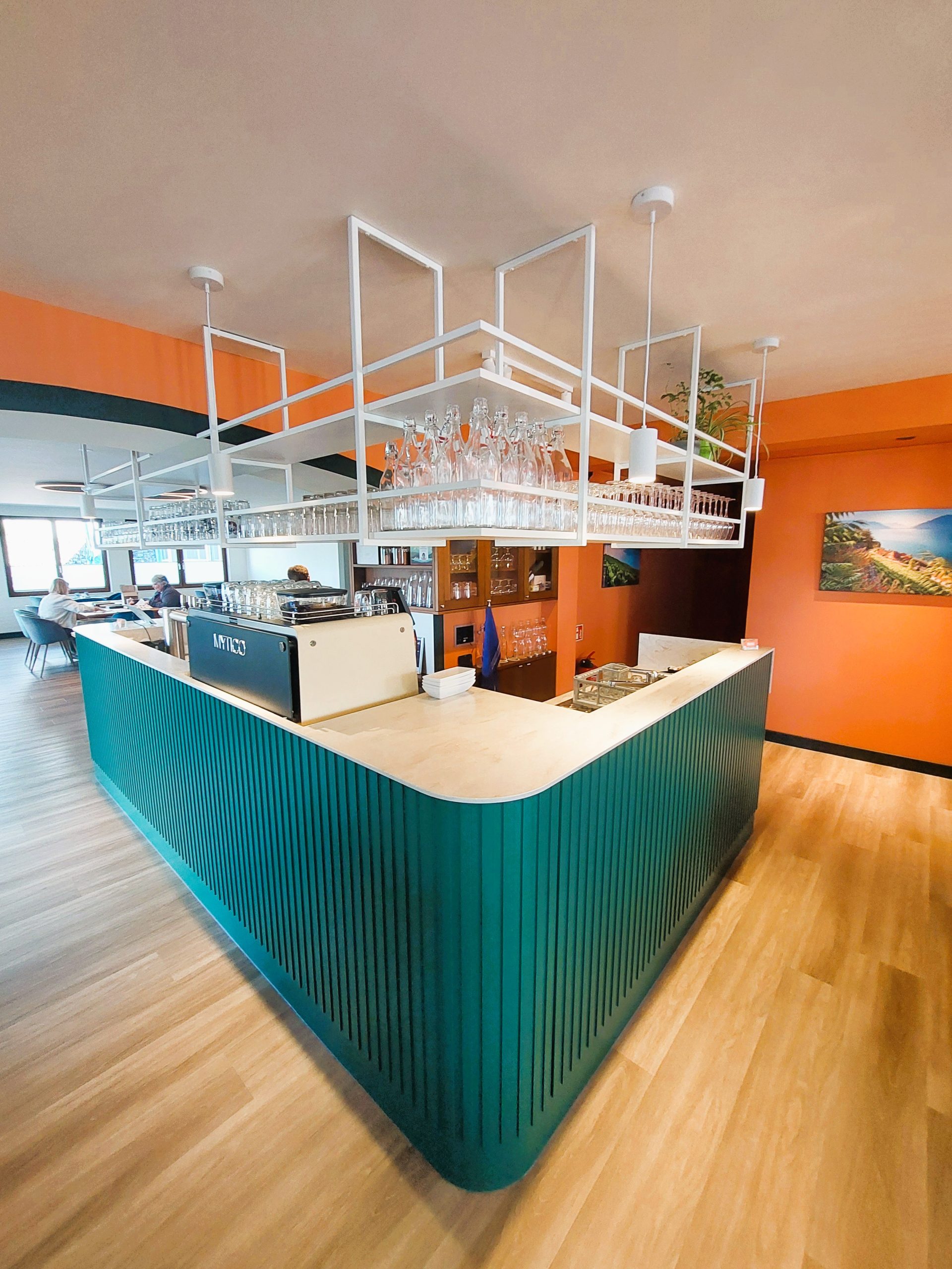 Une organisation décloisonnée et fluide a été privilégiée, tant pour les clients que pour le personnel, autour d’un comptoir central multifonctionnel conçu sur mesure, permettant de centraliser les services et de rationaliser les flux.