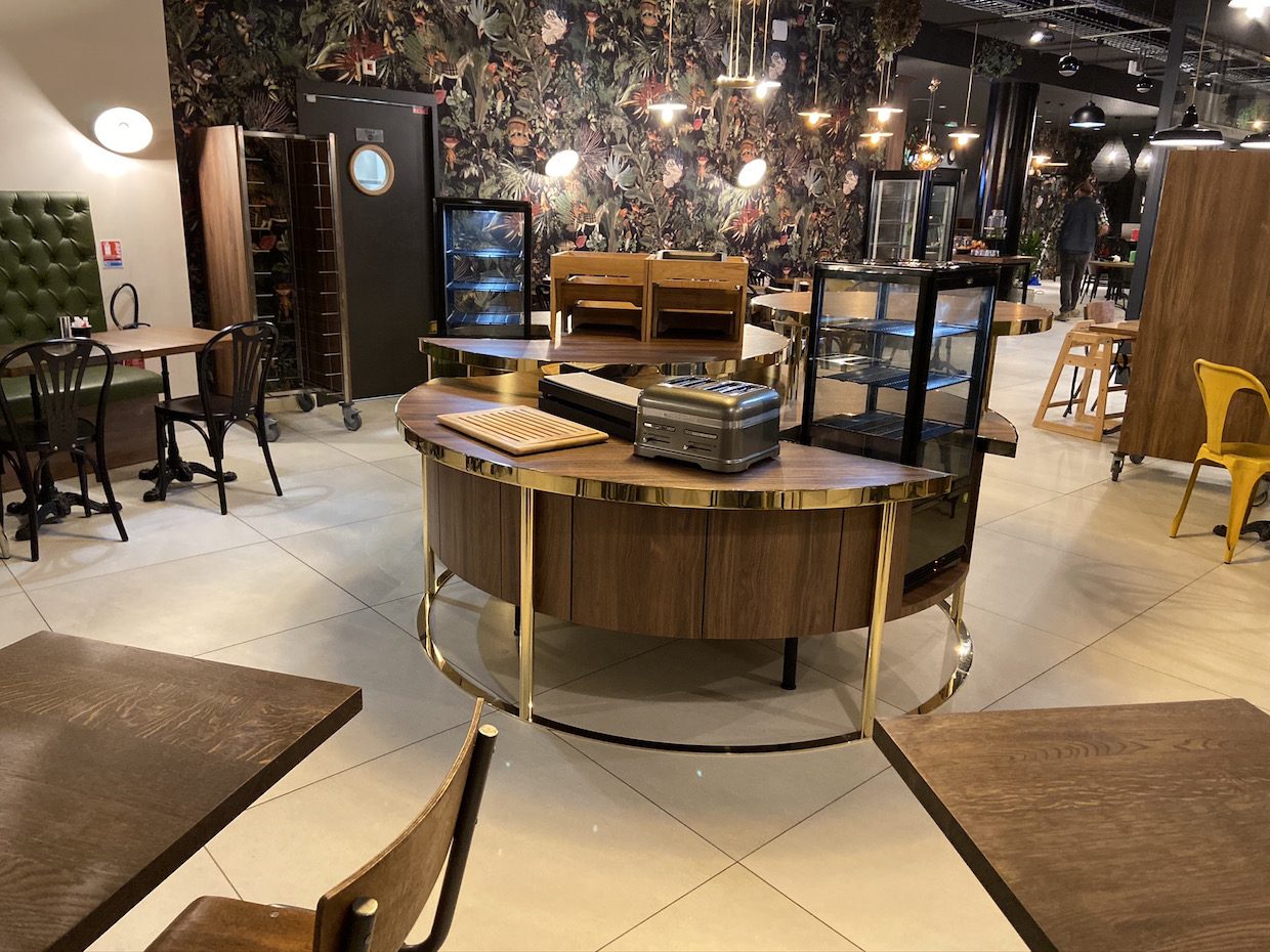 Le lobby, véritable cœur de l’établissement, associe fonctionnalité et élégance grâce à du mobilier sur mesure comprenant l’accueil, l’espace d’attente/bar et la salle de petit déjeuner, conçus selon les exigences ergonomiques de l’hôtellerie.