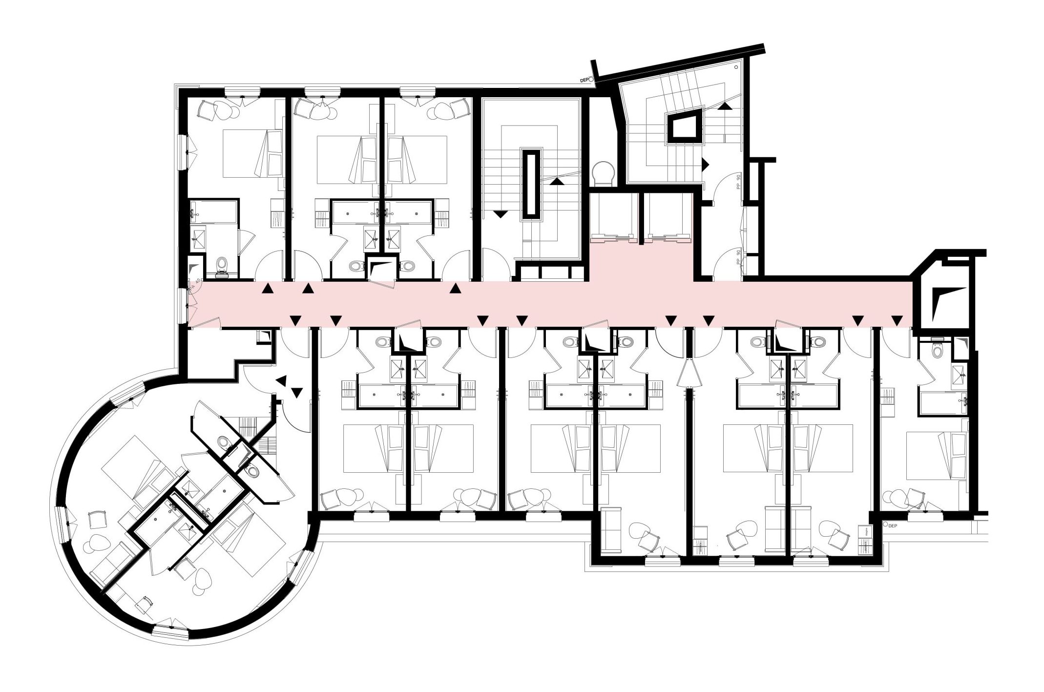 Projet d’aménagement et de design intérieur d’un bâtiment neuf dédié à un hôtel 3 étoiles de 84 chambres.