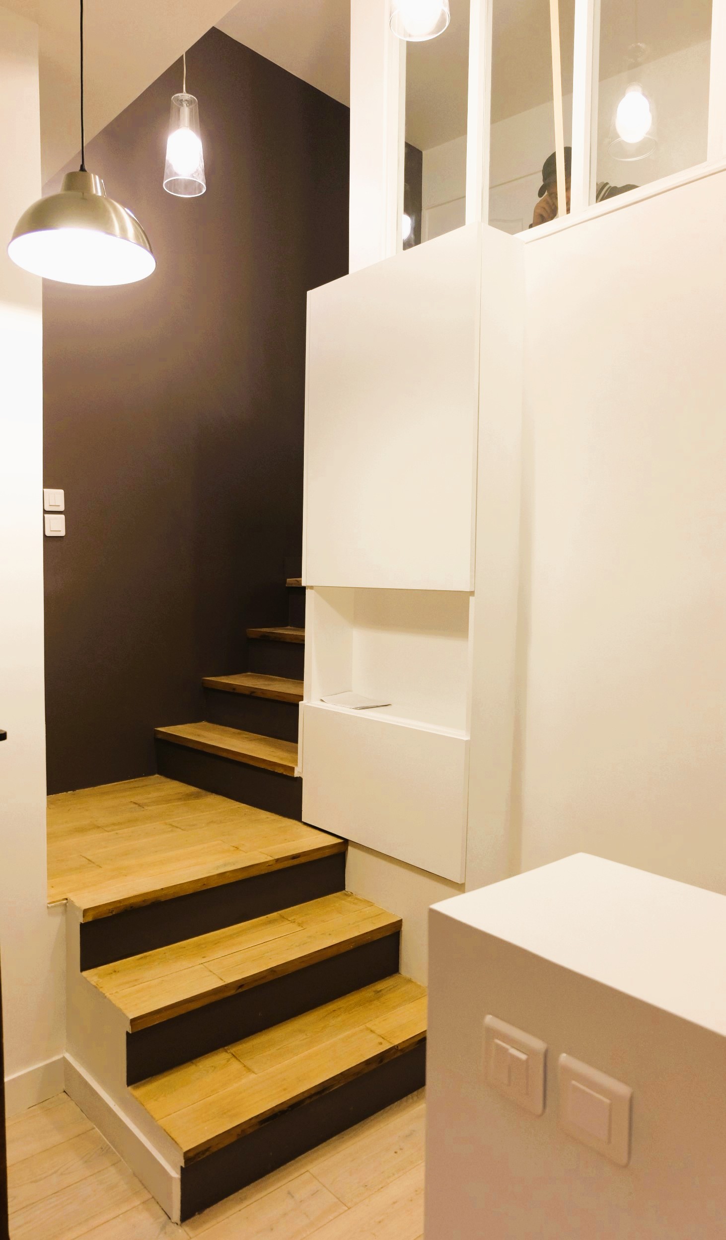 Les combles ont été aménagés en espaces habitables, intégrant du mobilier sur mesure permettant une optimisation fine des volumes.