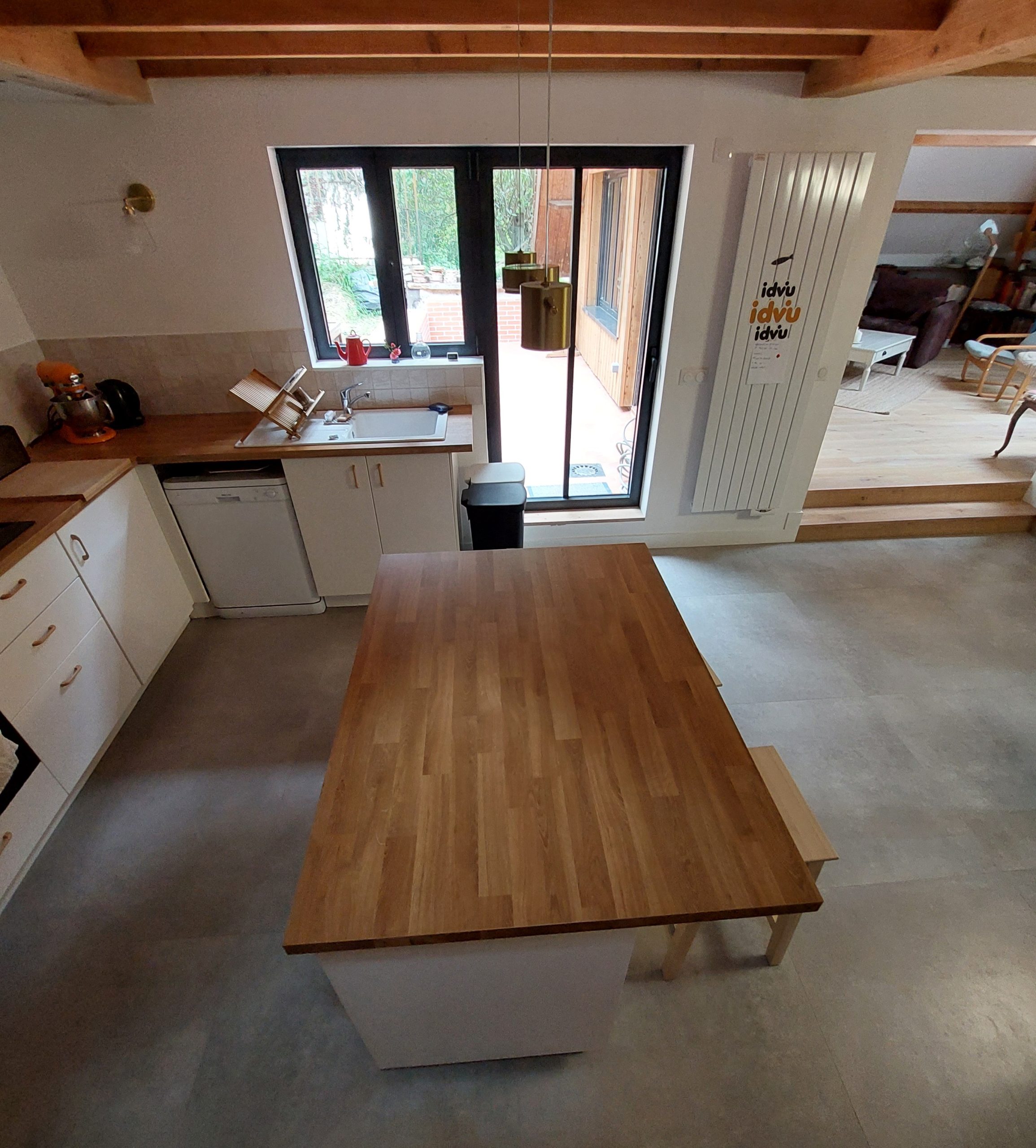 La réorganisation des pièces de vie, notamment par l’inversion des fonctions cuisine et salon, permet de bénéficier de volumes plus généreux et d’une meilleure orientation lumineuse.