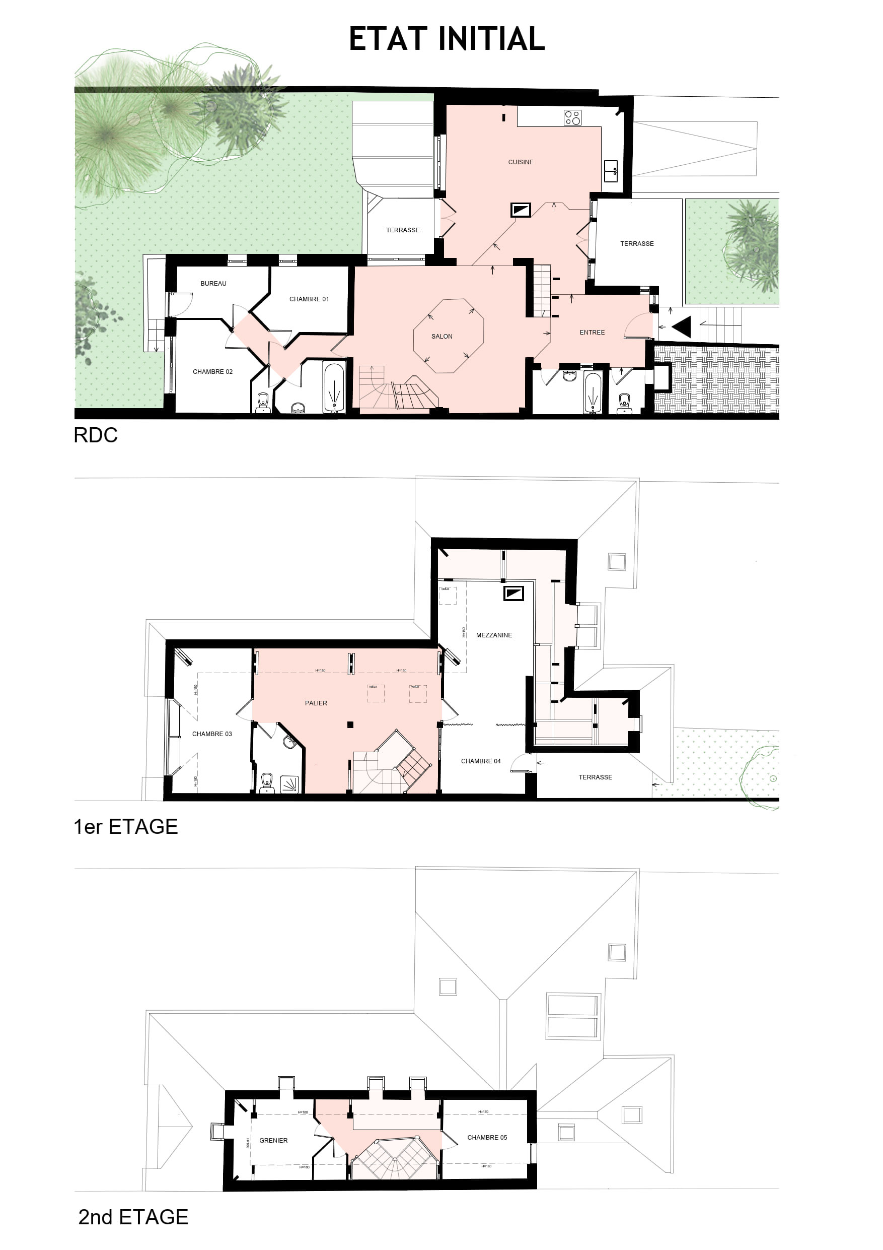 Le projet s’attache à respecter l’identité architecturale d’origine tout en optimisant la distribution intérieure, la luminosité et la fluidité des circulations.