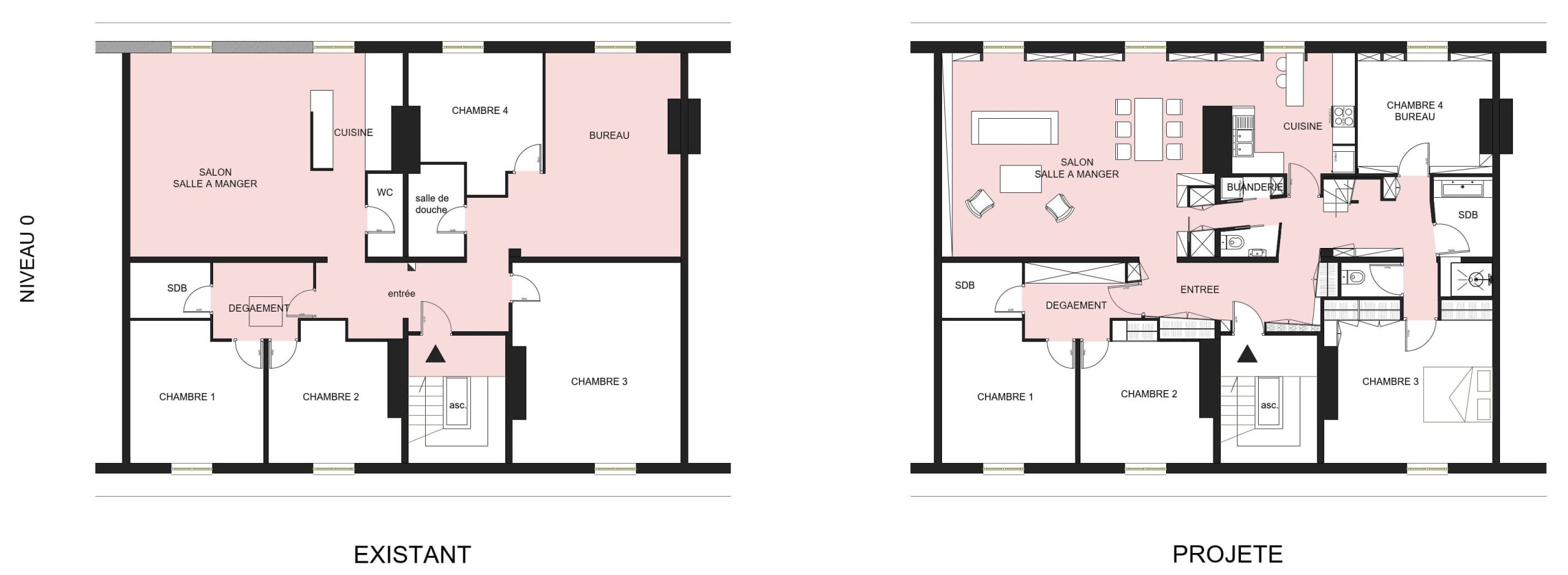Ce projet concerne la réunification de deux appartements contigus au sein d’un immeuble haussmannien, acquis progressivement par les propriétaires afin d’accompagner l’évolution de leur cellule familiale.