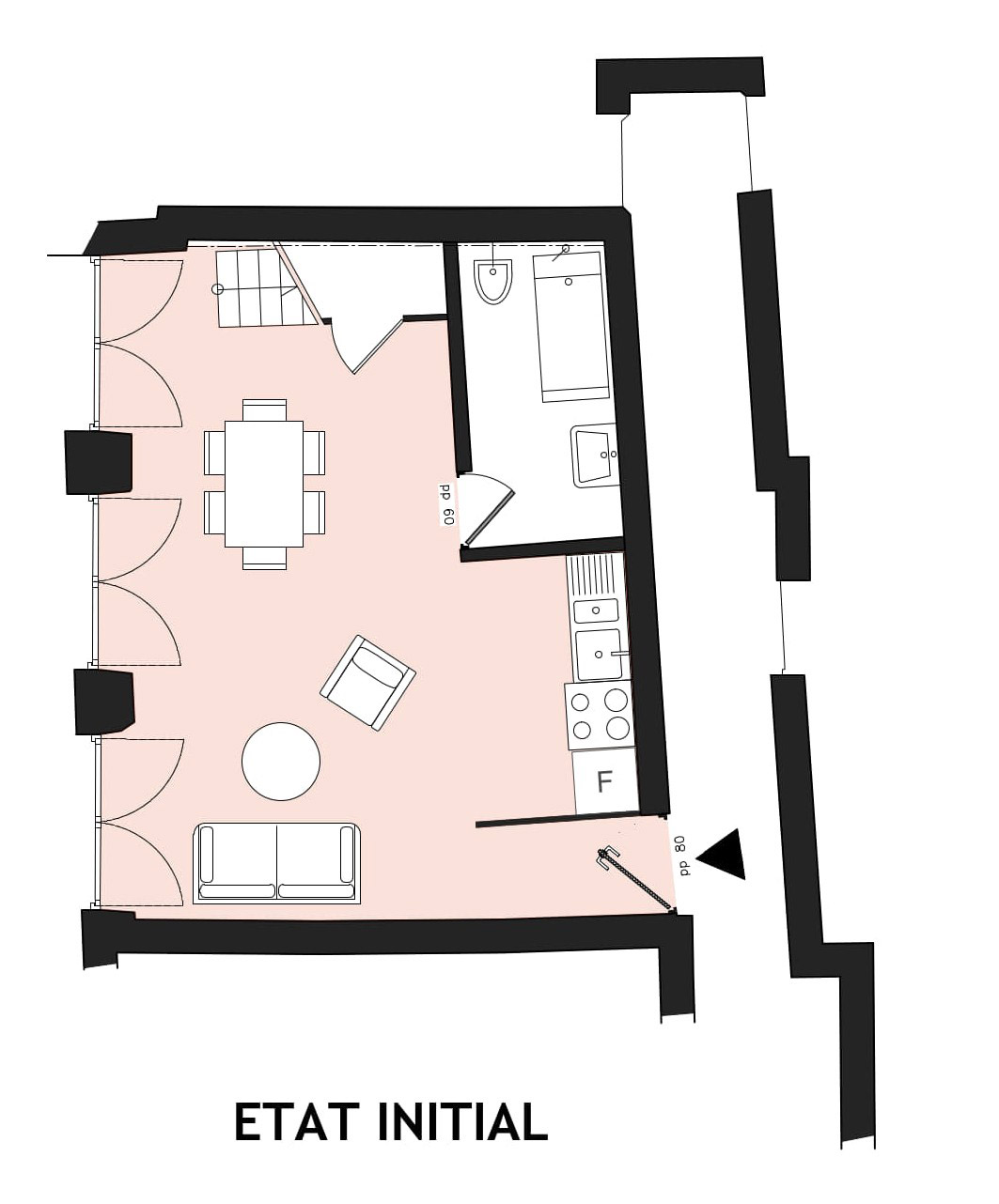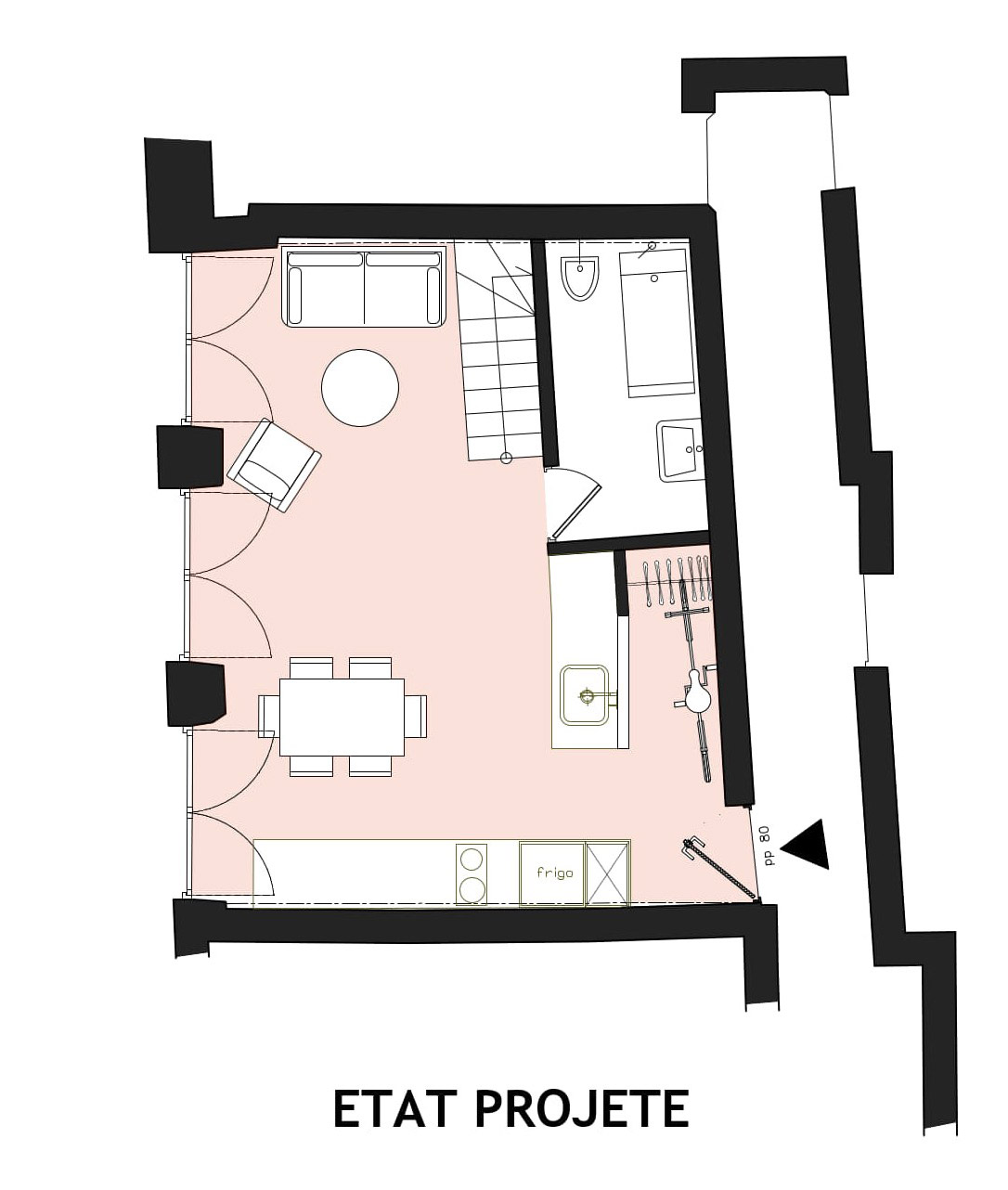L’intervention vise à optimiser chaque mètre carré, dans un contexte de volumes verticaux généreux mais de surface au sol limitée.