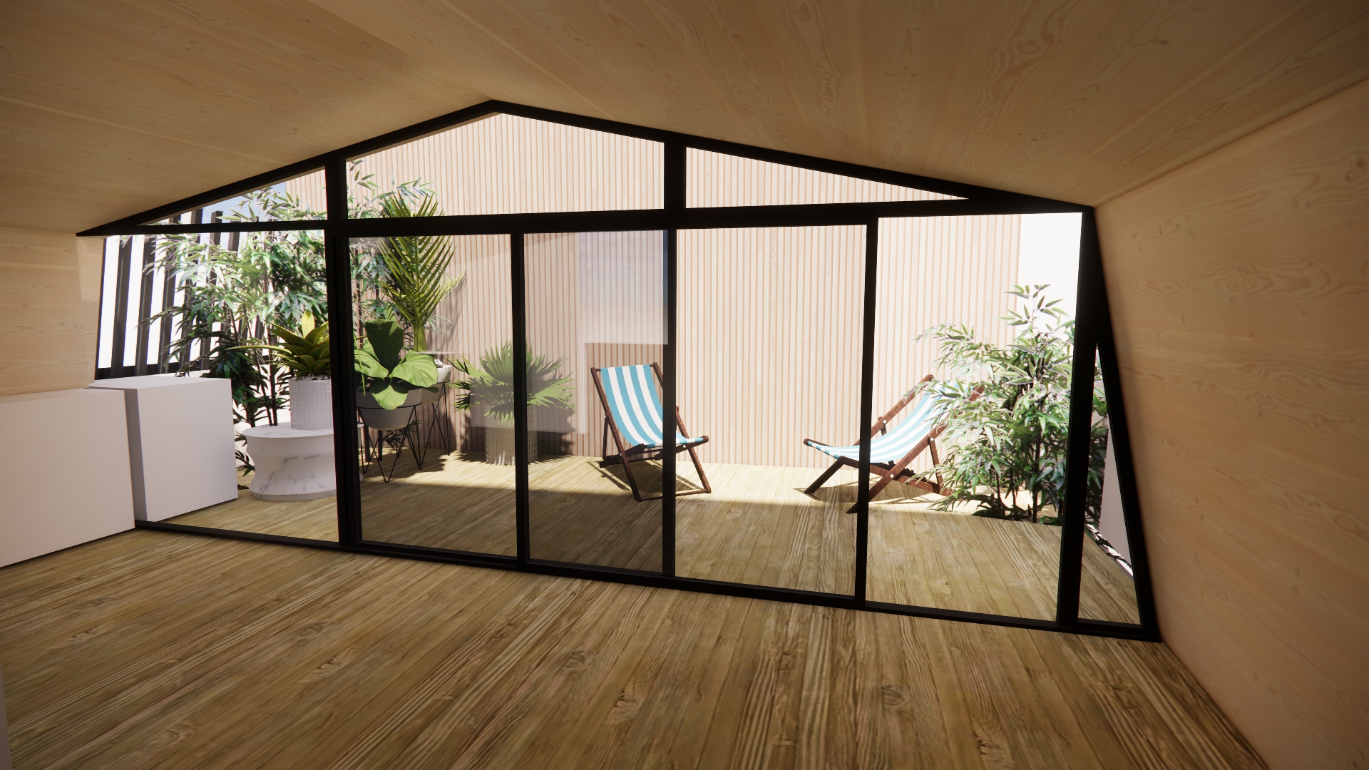 Une terrasse est ainsi implantée en retrait de la rue. Afin de préserver la lecture du gabarit existant et d’assurer une insertion discrète, les garde-corps côté rue s’alignent dans la continuité de la toiture.